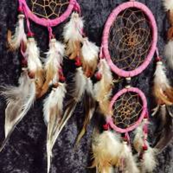 Traumfänger / Dreamcatcher, 5 Ringe, lachsfarbend (TR29)