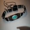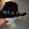 Hutband, oder als Choker zu tragen, mit türkisfarbenem Cabochon und schwarzen Hornpipes (HB 06)