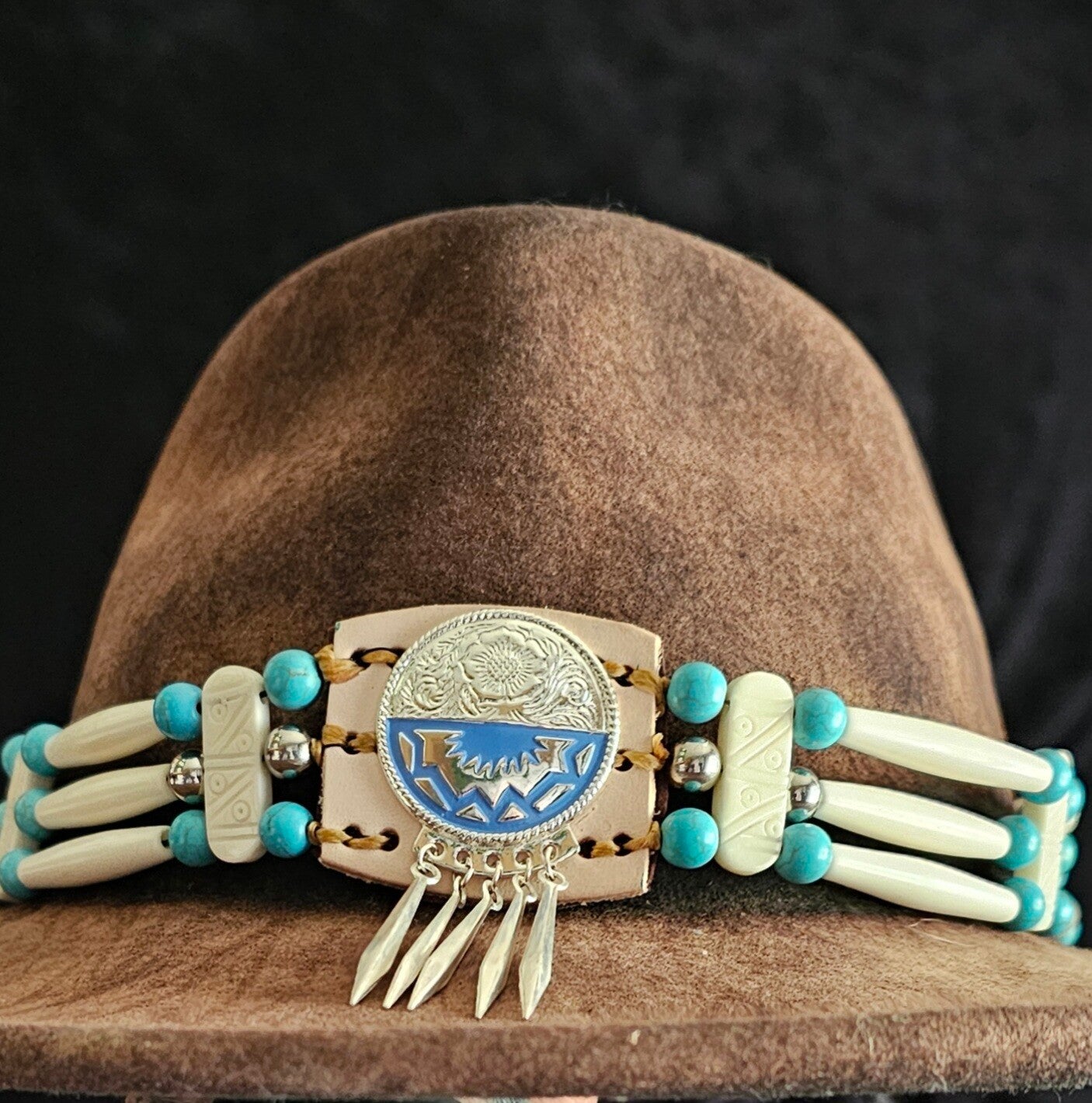 Hutband im indianischem Stil, mittig mit Zierapplikation (HB10)