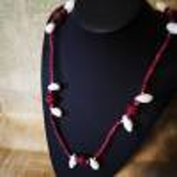 Halskette rot, mit kleinen Muscheln, in Holz-Optik, Vintage-Stil, Hippi, Nostalgie (HK5)