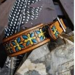 Lederarmband mit blau punziertem Muster, Dornschließe (RLA41)