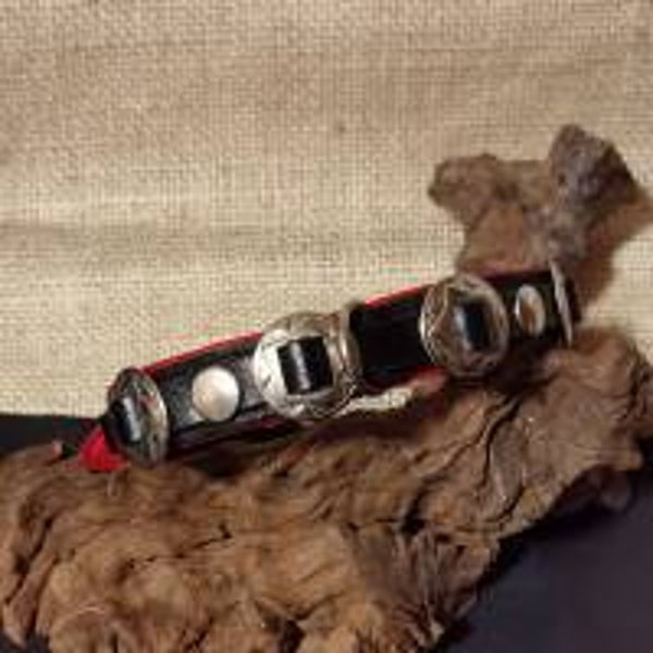Hundehalsband mit Concha und Nieten, Vollleder (MHH 13)