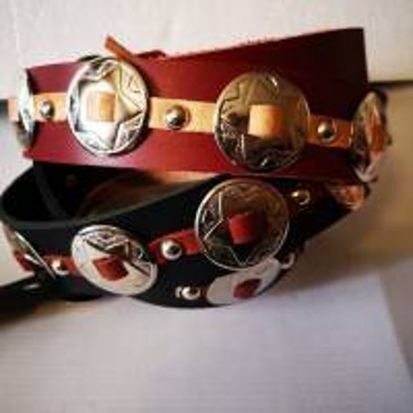 Ledergürtel - Buckle-Gürtel mit Concha Schwarz, oder Rot, Western-Stil, auch Übergrößen (MGÜ 04)