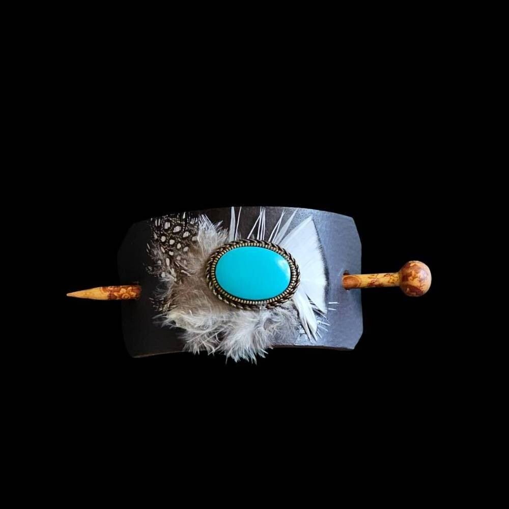 Haarschmuck, Haarspange mit Haar-Stab, mit echten Federn (HS14)