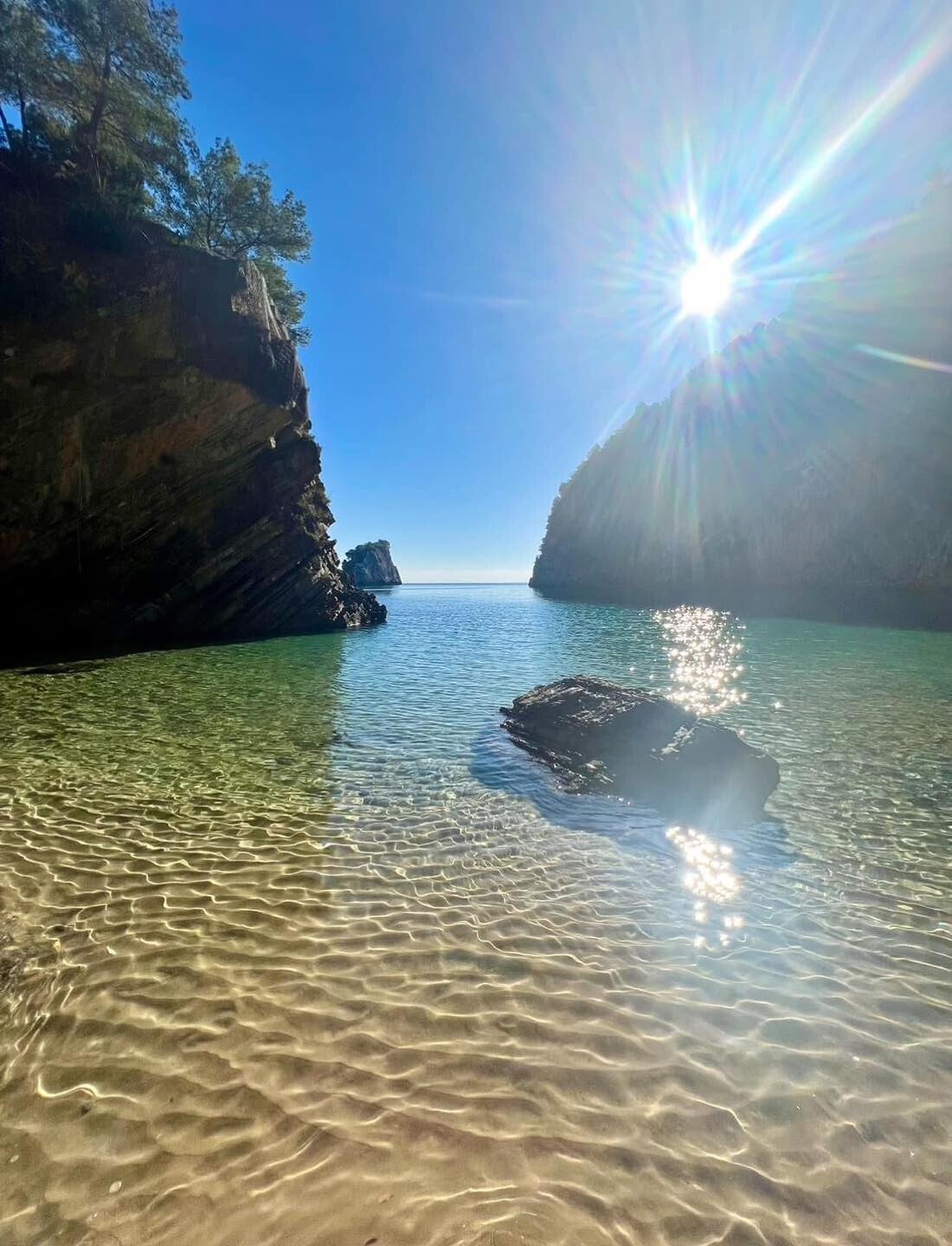 Sonnenlicht in klarer Felsbucht – mediterrane Küstenfotografie als digitaler Download